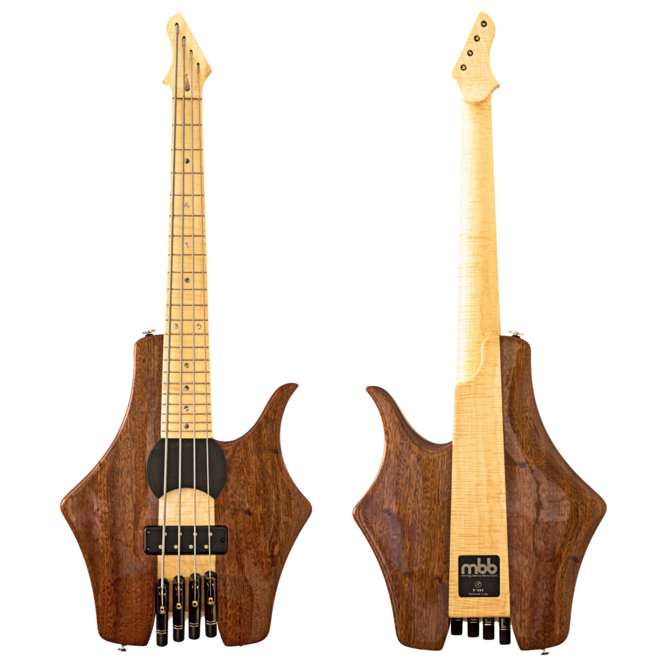 4 String bass (tuning E,A,D,G), 23″ scale length, Ebony fingerboard, 19 frets, neck-through construction, Mahogany Kaya body, 2.10 Kg weight, Nordstrand “Fat Stack” pickup, “Technology for Musicians” tuners, 19mm string spacing at bridge, 9mm to 10mm progressive spacing at nut (39mm wide), removable “Moon” for right hand fingers support in ebony