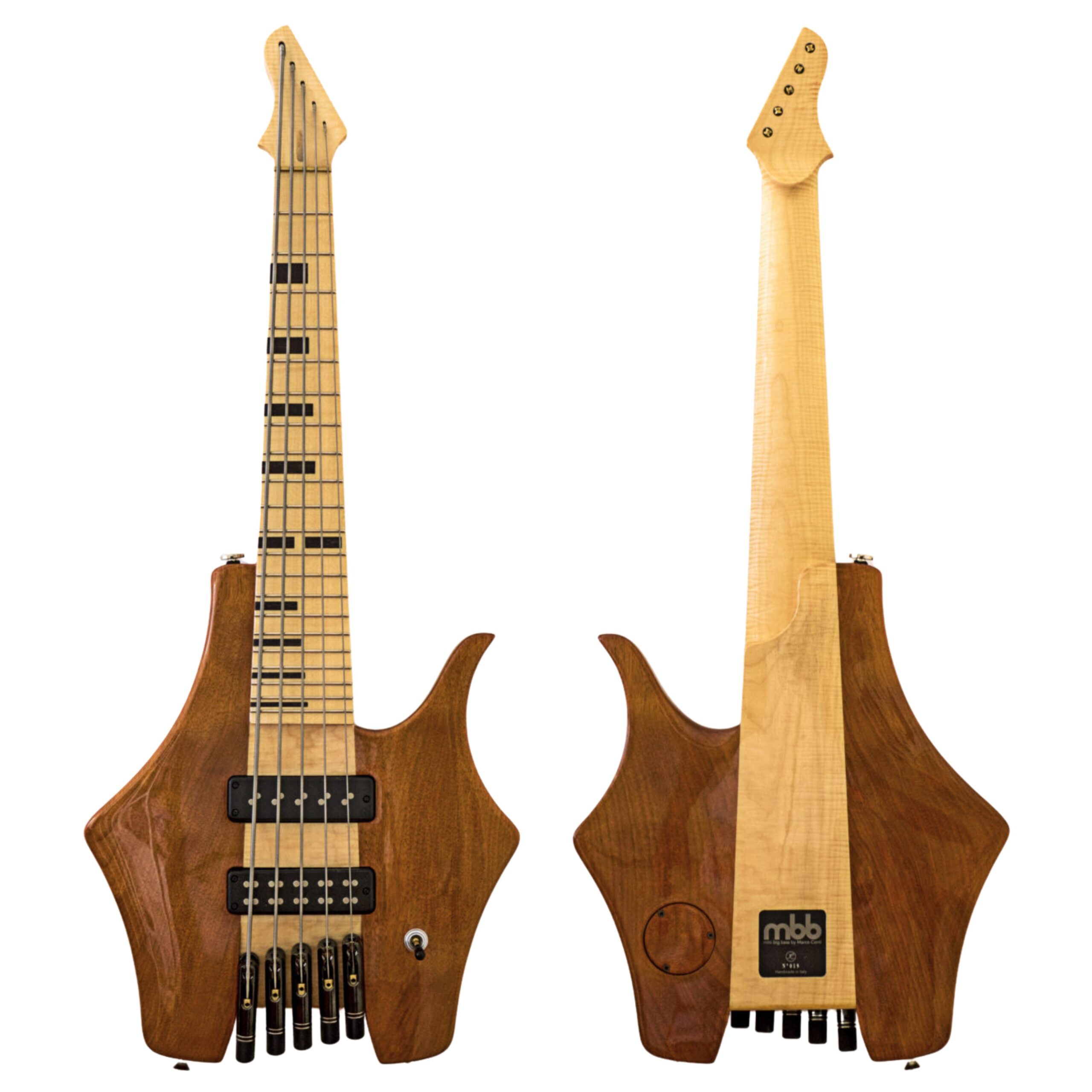 5 String bass (tuning E,A,D,G,C), 23″ scale length, Ebony fingerboard, 19 frets, neck-through construction, Mahogany Kaya body, 2,30 kg weight, Nordstrand “Fat Stack” pickup, “Technology for Musicians” tuners, 19mm string spacing at bridge, 8mm to 9,5mm progressive spacing at nut (45mm wide), removable “Moon” for right hand fingers support in ebony